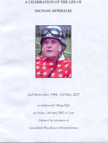 Hi too you all. By way of the Web site my I bring to your attention that on Friday the 11th of May we in Scrumpie land had to say fair well to Michael, Husband of Marilyn. Marilyn is one of our ten-year members from Gloucester. Michael had been a good member of the Scrumpies and to the end had not let his illness get him down. Over the last 2 years Michael had not been able to take part in some of the many activity we have been doing. This was down to cancer, which had been his burden. Which as the Scrumpies, which attended on Friday found out. He was a fighter till the end in this life, but has now gone ahead too check out the bike/trail ride, which we all will have to make at some time in the future. Michael had taken time to plan his last day, may I say in great detail but with great gusto. Well done Michael, if you have to go what away to do it. He did have his day and all supported his wishes. Marilyn was a rock for Michael in the last few years and on the day did not waver. What a credit you are and our thought are with you at this time. And also to your family and friends. What more can one say accept farewell but not forgotten Michael.Blacky and members.